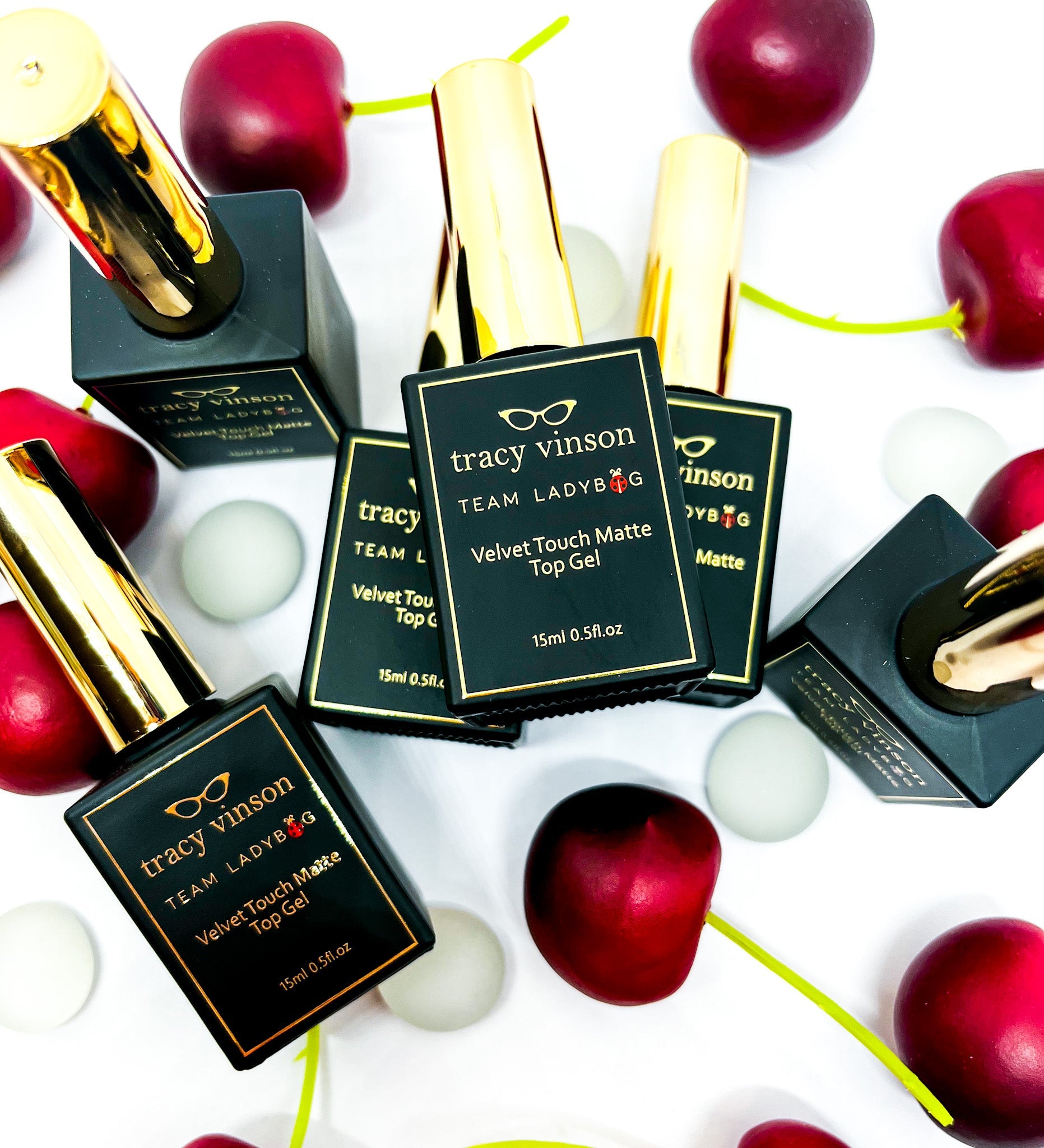 Exclusive Team Ladybug product. You're going to love this top gel. Velvet Touch Matte Top gel will make all of your nails beautifully matte.