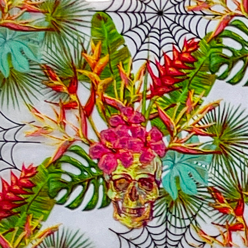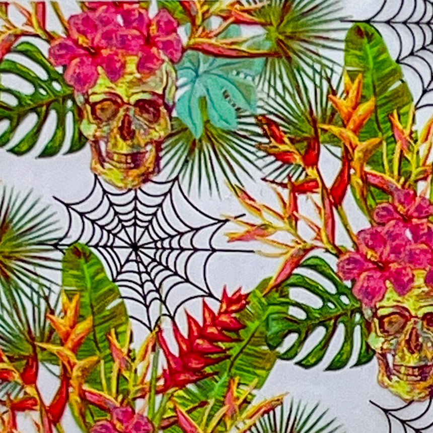 Halloween fall skull spider web tropical floral flower nail art foil.