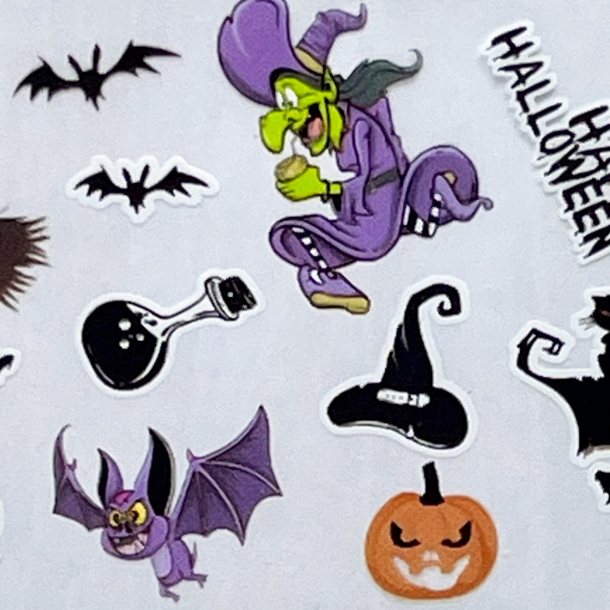 Halloween fall skull spider bat witch cat pumpkin nail art foil.
