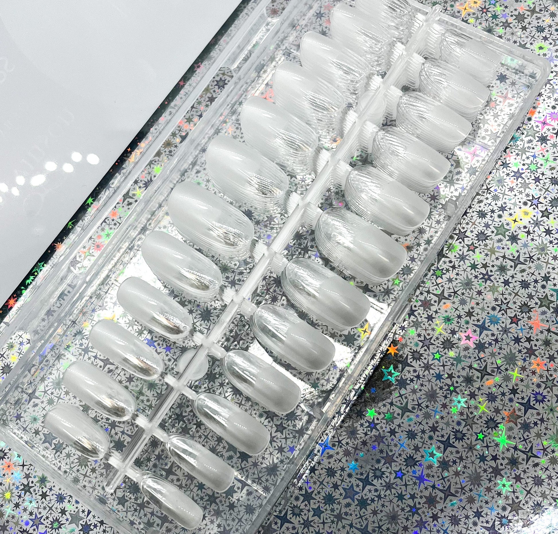These soft gel tips are made of a pliable soft gel for easy attachment. They can double as both a full cover nail that can be attached to the natural nail, or a full cover press-on nail. They are pre-etched.