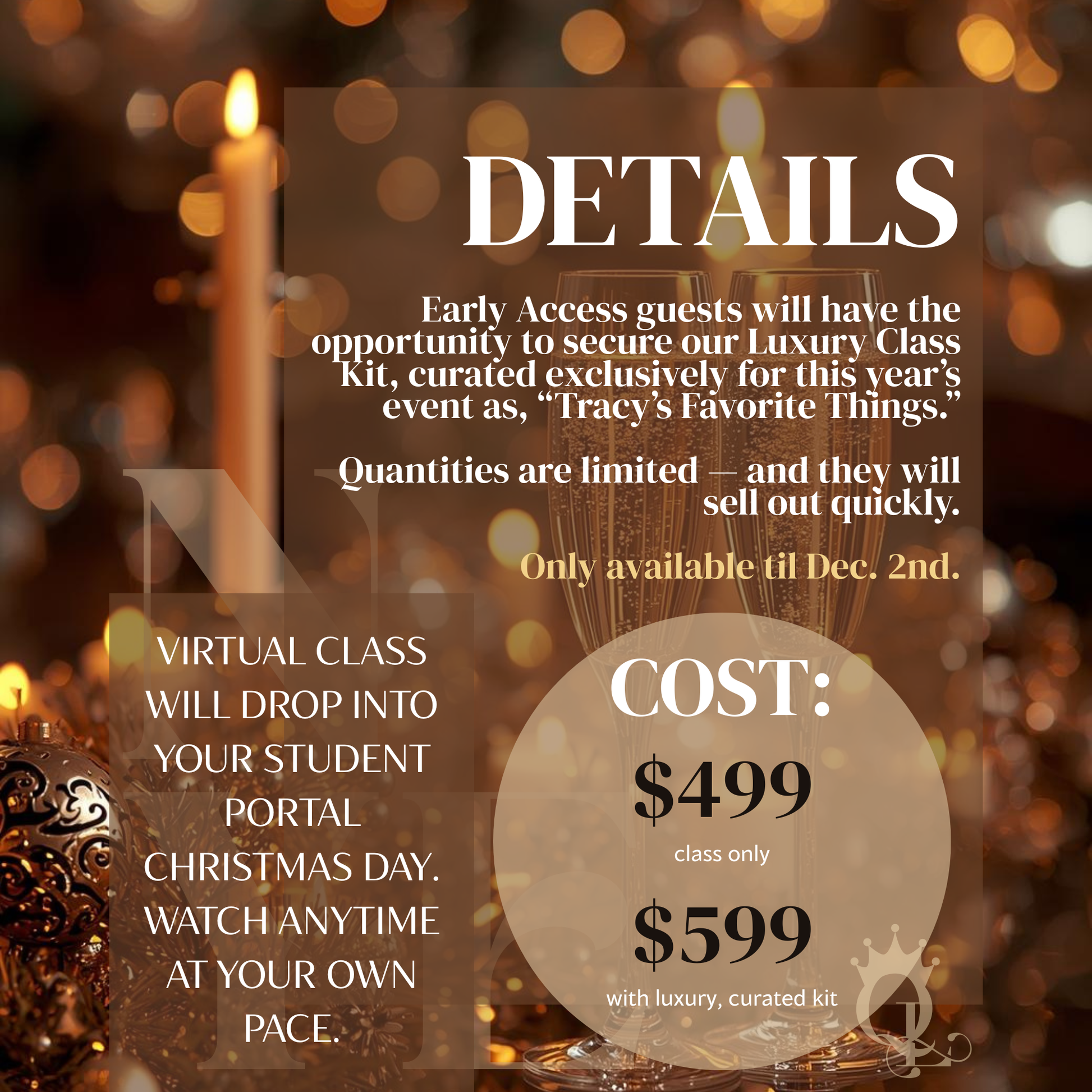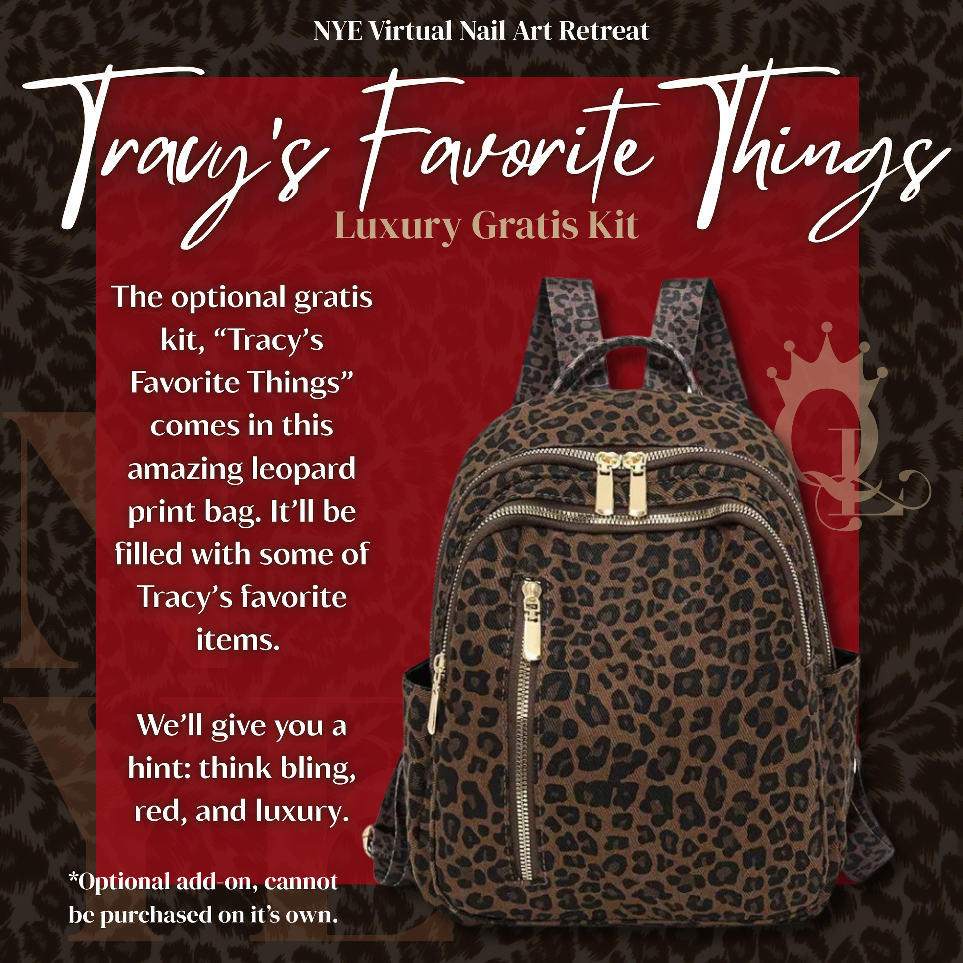 Early Access guests will have the opportunity to secure our Luxury Gratis Kit, curated exclusively for this year’s event as, “Tracy’s Favorite Things.” We'll give you a hint: leopard, bling, things that are red. LOL. This kit is optional, and quantities are limited. They will sell out quickly and they can remain shipping until December 22nd or until they're gone.