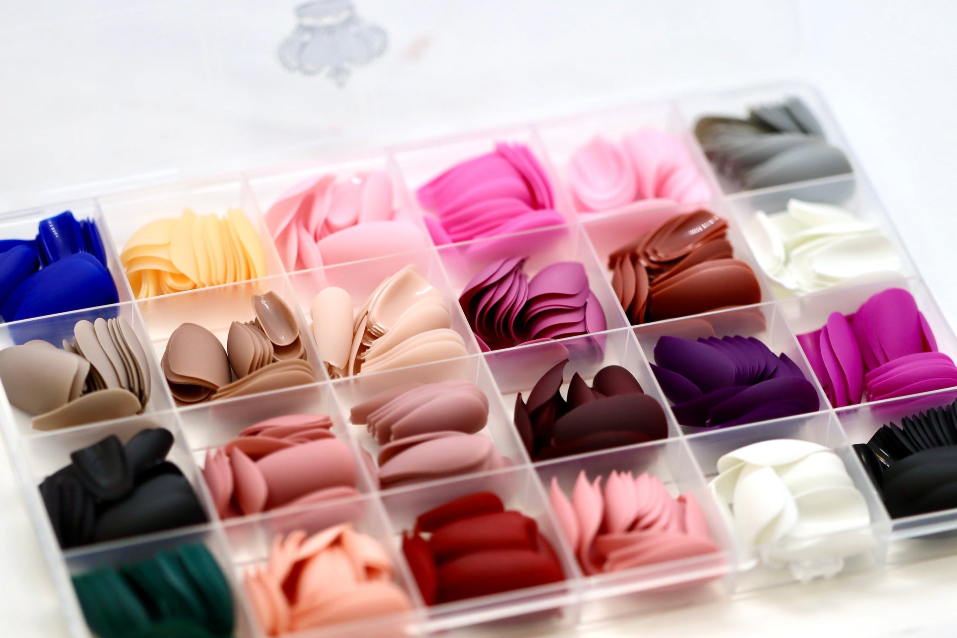 QUANTITY: Over 500pcs. of nails, in both regular and extended sizing (x-small and x-wide)