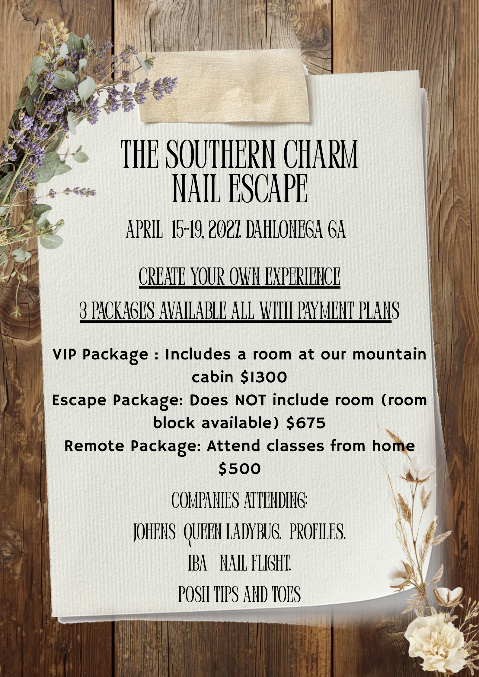 Spots are limited — reserve your package today and join us at the Southern Charm Nail Escape!